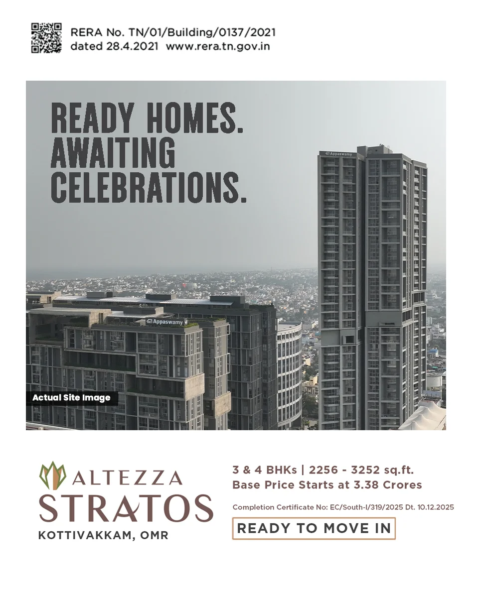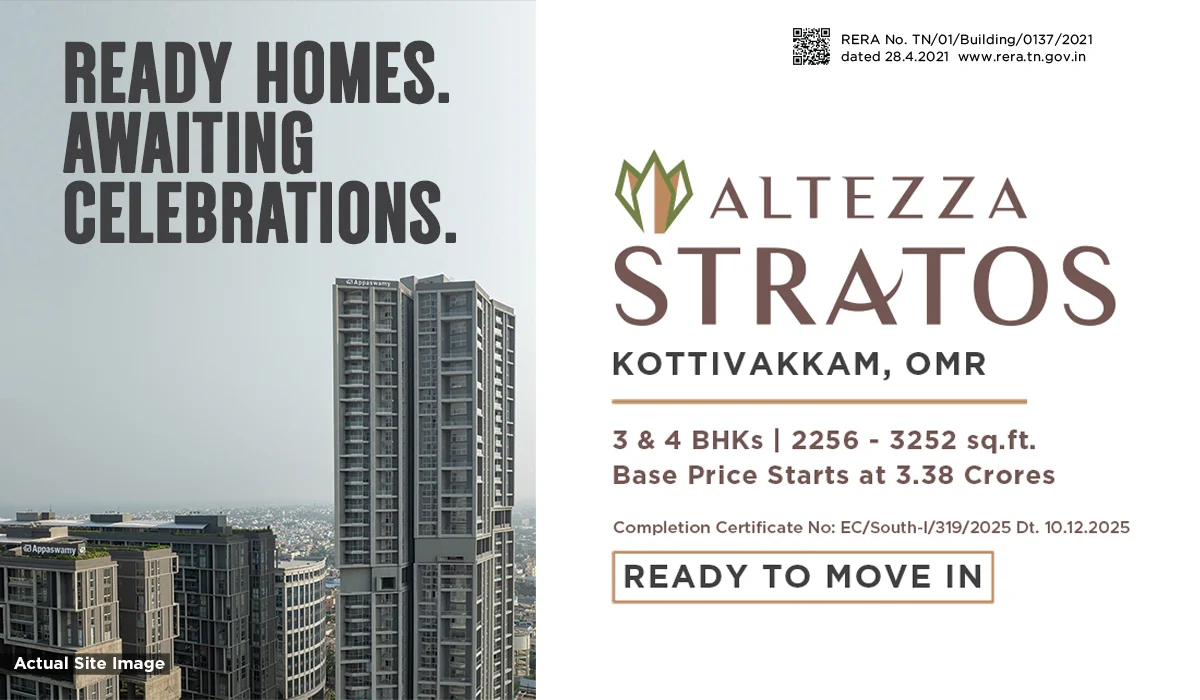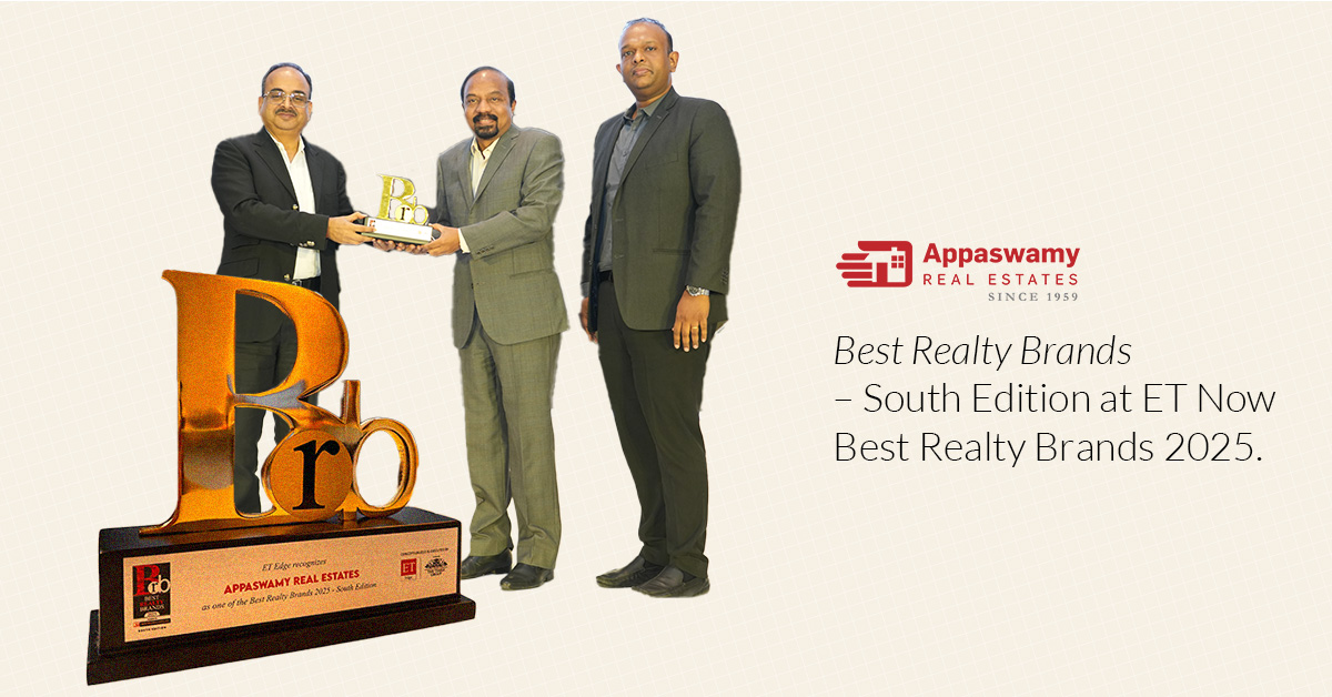 Know moreFounded in 1959 by a visionary entrepreneur, Mr S Appaswamy, Appaswamy Real Estates is an eminent real estate conglomerate and one of the leading builders in Chennai. We are constantly expanding our footprint with exquisite dwellings and elevated lifestyle solutions in our apartments in Chennai. Our clientele spans thousands of happy residents and families in this beloved city.