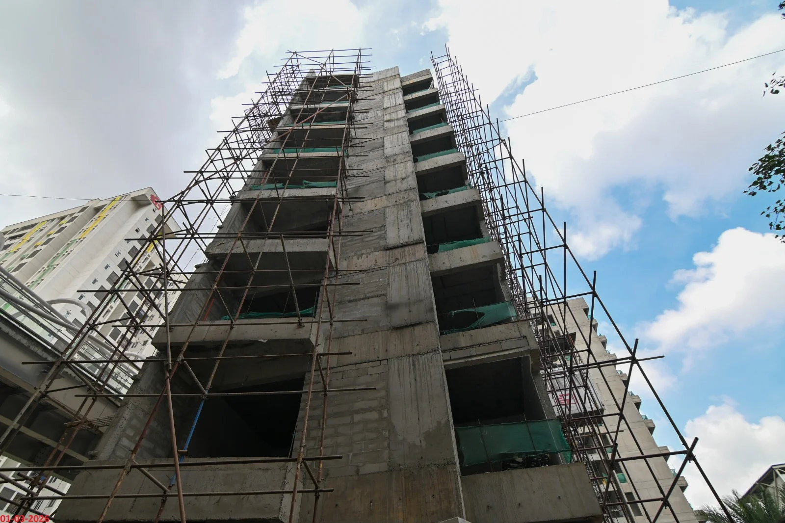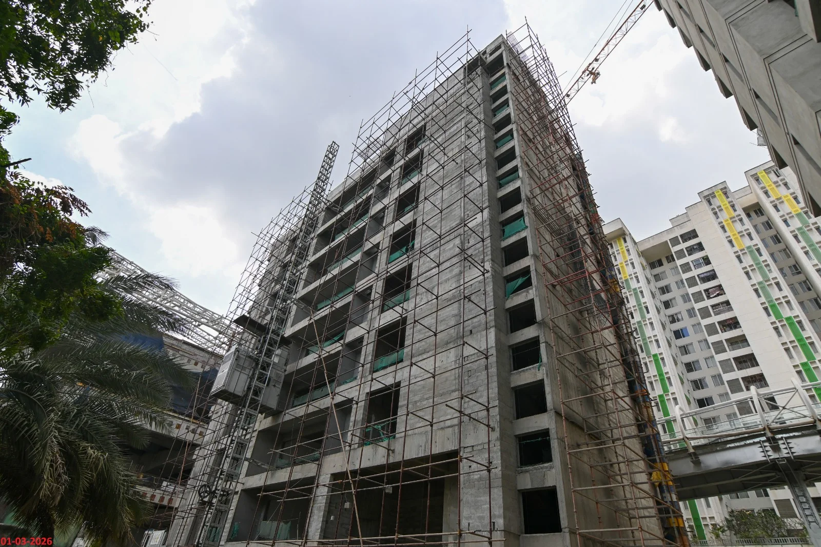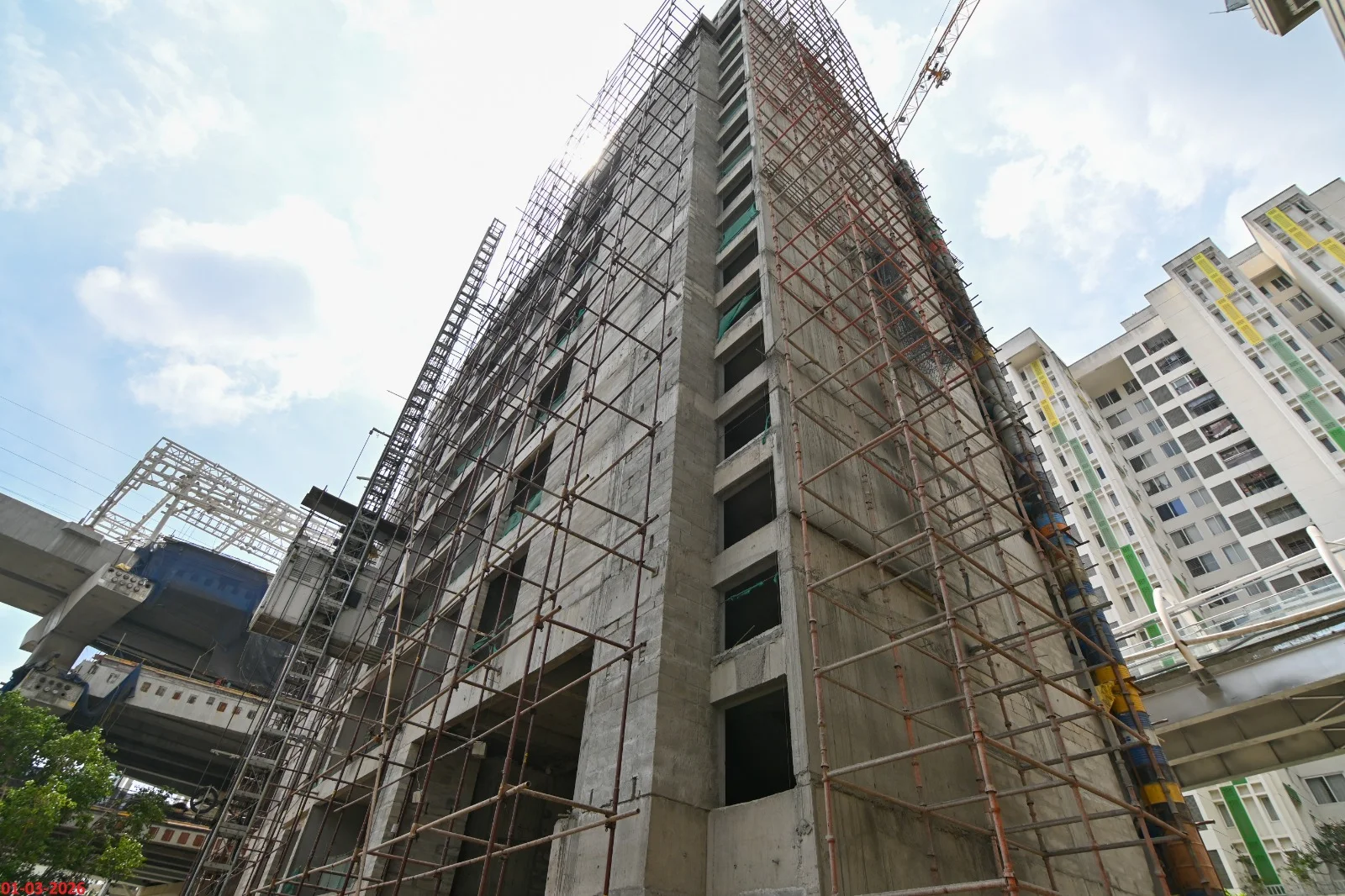 Block 1 = 2705 Sq.ft ( 3 BHK) = 3156 Sq.ft ( 4 BHK) Block 2 = 1947 & 2438 Sq.ft ( 3 BHK) = 3077 & 2878 Sq.ft ( 4 BHK)
